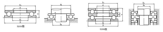 | 现型号 | 原型号 | d | D | T | d1 | D1 | B | rs | r1s | 动 | 静 | 脂 | 油 | Mass |